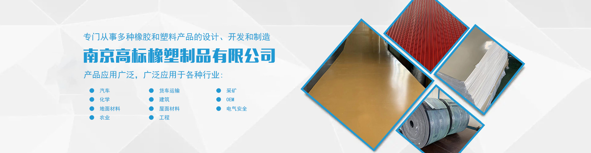 南京高標(biāo)橡塑制品有限公司是一家專業(yè)的橡膠板、橡膠制品和熱塑性塑料產(chǎn)品的制造商。主營(yíng)產(chǎn)品:三元乙丙橡膠板,丁腈橡膠版,氯丁橡膠板,丁苯橡膠板,丁基橡膠板,天然橡膠板,硅橡膠板,氟橡膠板,絕緣,防靜電,導(dǎo)電橡膠板,夾布,夾金屬網(wǎng)橡膠板,耐酸堿橡膠板,耐油橡膠板,耐磨橡膠板,阻燃橡膠板,阻尼橡膠板,減震橡膠板,防滑橡膠板,橡膠墊片等。 高標(biāo)橡塑專門從事多種橡膠和塑料產(chǎn)品的設(shè)計(jì)、開發(fā)和制造。我們的產(chǎn)品應(yīng)用廣泛。廣泛應(yīng)用于各種行業(yè),包括:汽車,貨車運(yùn)輸,采礦,化學(xué),建筑,OEM,地面材料,屋面材料,電氣安全,農(nóng)業(yè),工程等。 高標(biāo)橡塑的客戶服務(wù)于許多行業(yè),包括墊片切割、分銷商、工業(yè)用品零售商和批發(fā)商。自